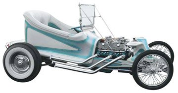 1-25 Scale. Designed and built by Ed Big Daddy Roth the Outlaw was one of Americas most publicized show cars. The Outlaw was a daring, radical fiber-glass bodied hot rod that won multiple trophies at every major custom car show from coast to coast. Custom V-8 engine with four carburetors, chrome exhaust and suspension. Display items, show stanchions, trophies and sign board. Decals for authentic Roth designed paint scheme. Molded in white with chrome plated parts and soft black tires. Skill level 2.