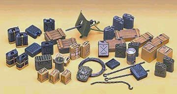 1/35 scale. This set comes with many accessories from WW II and Modern times. Skill level 2