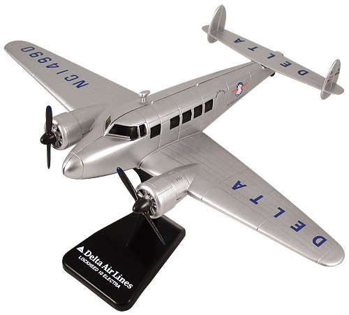 This is a beautiful authorized replica of the historic Lockheed 10 Electra airliner flown by Delta Airlines. The E-Z Build kit includes all parts needed for assembly and a stand imprinted with the airliners name. Collect all styles, from classics to ultra-modern models.