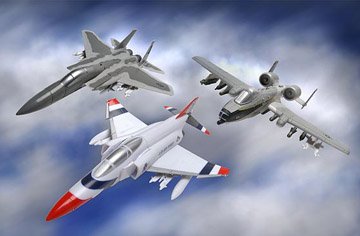 Kit contains 3 models: F-15 Eagle, A-10 Thunderbolt, F-4J Phantom Thunderbird.