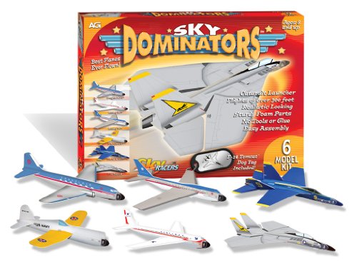 Build Six Awesome Models of the Best Planes Ever Flown! -- Have fun flying the Douglas DC-3, the Boeing 707, the Boeing 747, the F-4U Corsair, the F/A-18 Hornet, and the F-14 Tomcat. No tools or glue are necessary for assembly. -- The Sky Dominators Kit includes a catapult launcher (good for flights of over 300 feet!), realistic looking decals and sturdy foam parts. We've even included a F-14 Tomcat Dog Tag! -- Start building your planes today so you won't have to wait any longer to join the Sky Racers team! Recommended for ages 8+.