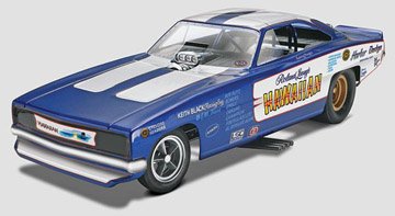 1-25 Scale. Length: 8-3/16" Parts: 102 Made famous by Roland Leong. A standout of the Funny Car circuit, the Hawaiian Charger was rebuilt with a redesigned Mini Charger body, following the original's high-speed rollover. Once the rebuilding process was complete, the Hawaiian regularly ran in the low seven-second bracket at speeds exceeding 200 mph. Kit features a hinged Mini Dodge Charger body with a Logghe built Stage II chassis, a detailed supercharged 426 cu. in. Chrysler Hemi engine, soft black tires, chrome-plated parts and decals with authentic Hawaiian graphics. Skill level 2.
